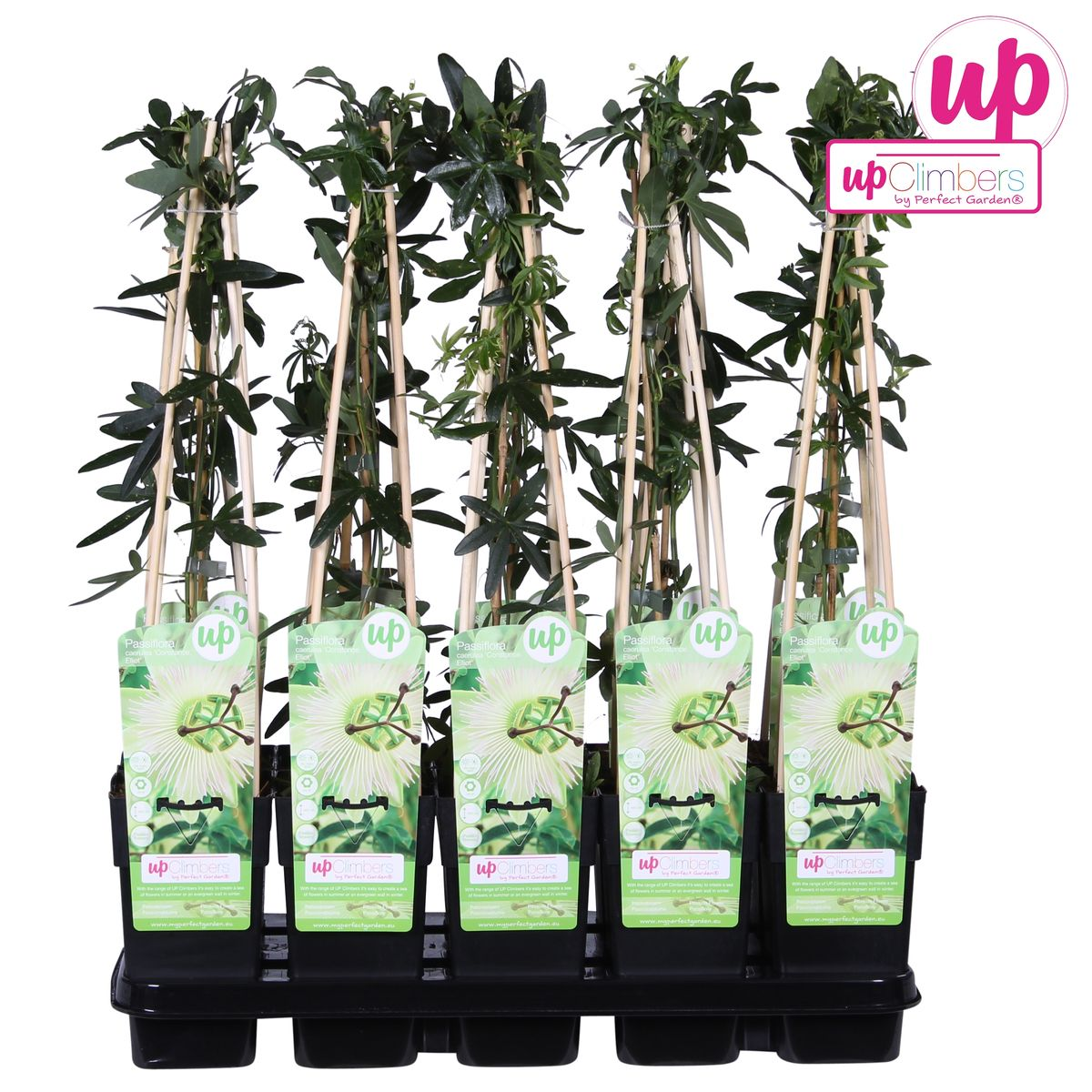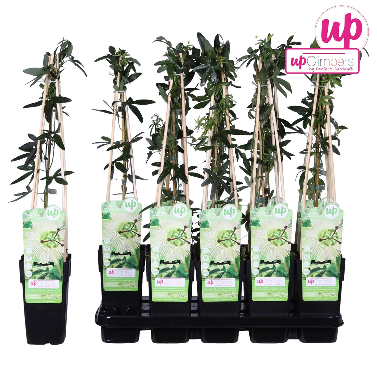 "Passiflora Caerulea Constance Elliot" ist eine Kletterpflanze mit wunderschönen Elfenbein -Weiß -Leidenschaftsblumen. Die Pflanze stammt ursprünglich aus Mittel- und West -Südamerika, aber jetzt können Sie auch tropische Atmosphäre in Ihrem eigenen Garten schaffen. Von Juni bis September können Sie Blumen in der Passiflora erwarten. Die Passionsblume ist ein wirklich schöner Wetterbloom. An heißen Tagen mit viel Licht/Sonne öffnen sich die Knöpfe. An einigen kälteren und dunklen Tagen werden sich nur wenige Blumen öffnen. Es ist ein echter Kletterer und bietet daher gerne eine gewisse Unterstützung beim Anbau eines Kletterrahmens oder eines Zauns.