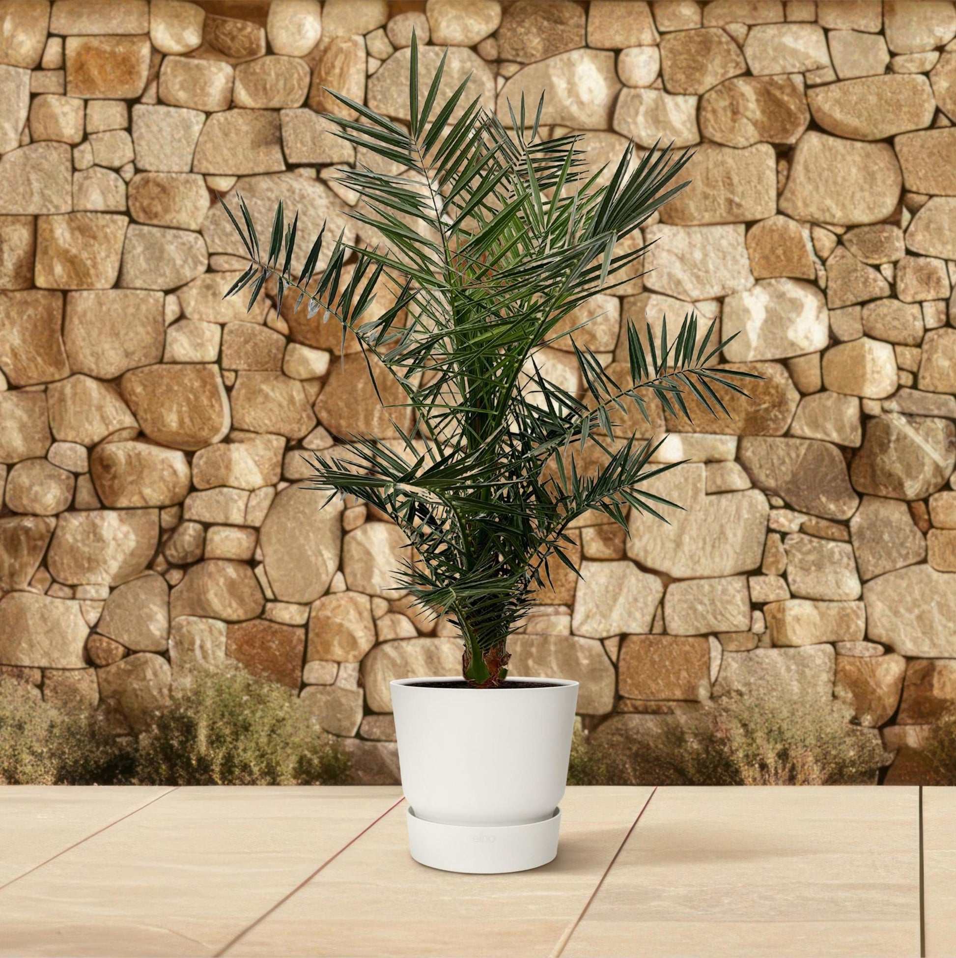 - Standort: Diese Palme liebt viel Sonnenlicht und kann sowohl drinnen als auch draußen platziert werden. Stellen Sie sie idealerweise an einen sonnigen Ort, sie verträgt jedoch auch leichten Schatten.